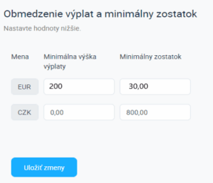 Taktiež je možné nastaviť aj minimálnu výšku výplaty.